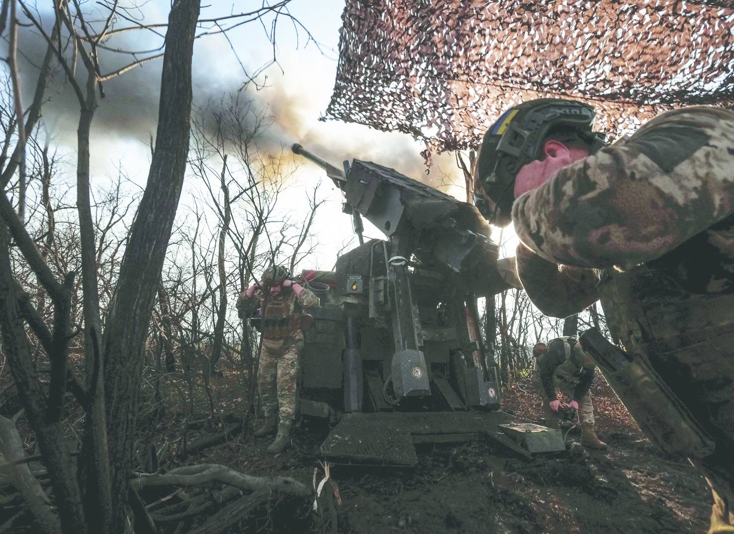 جنود أوكرانيون يطلقون النار من مدفع «هاوتزر» باتجاه القوات الروسية قرب بلدة بوكروفسك في دونيتسك (رويترز)