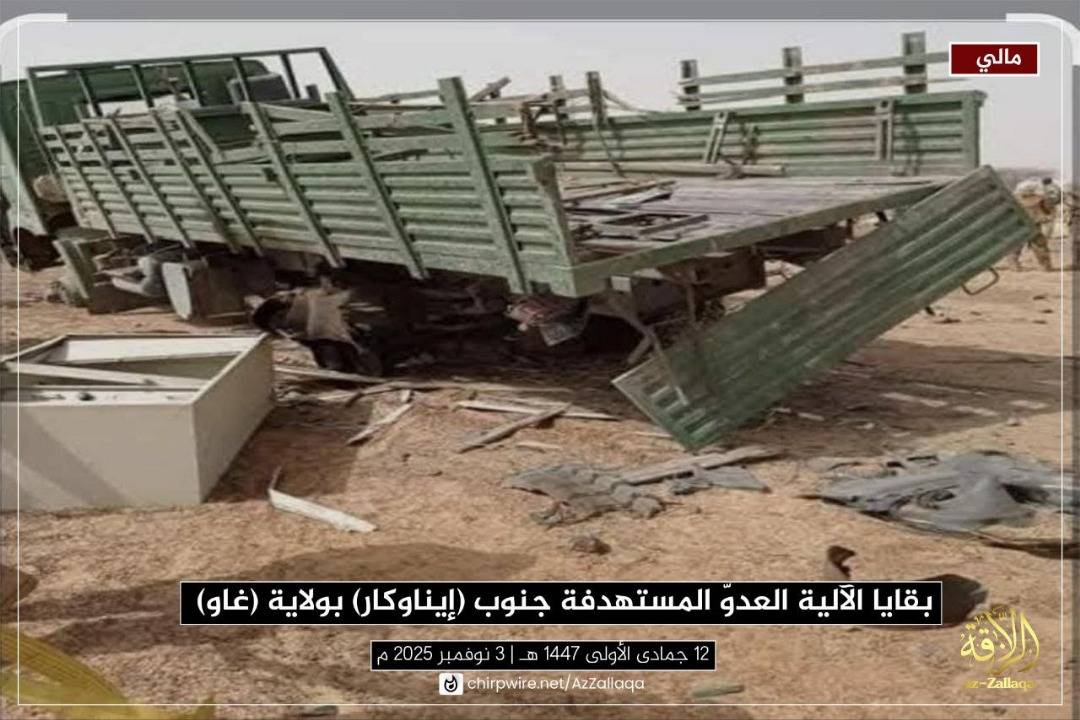 بقايا آلية عسكرية قال تنظيم «القاعدة» إنه دمرها في هجوم بولاية غاو شمال مالي في أكتوبر 2025 (تواصل اجتماعي)