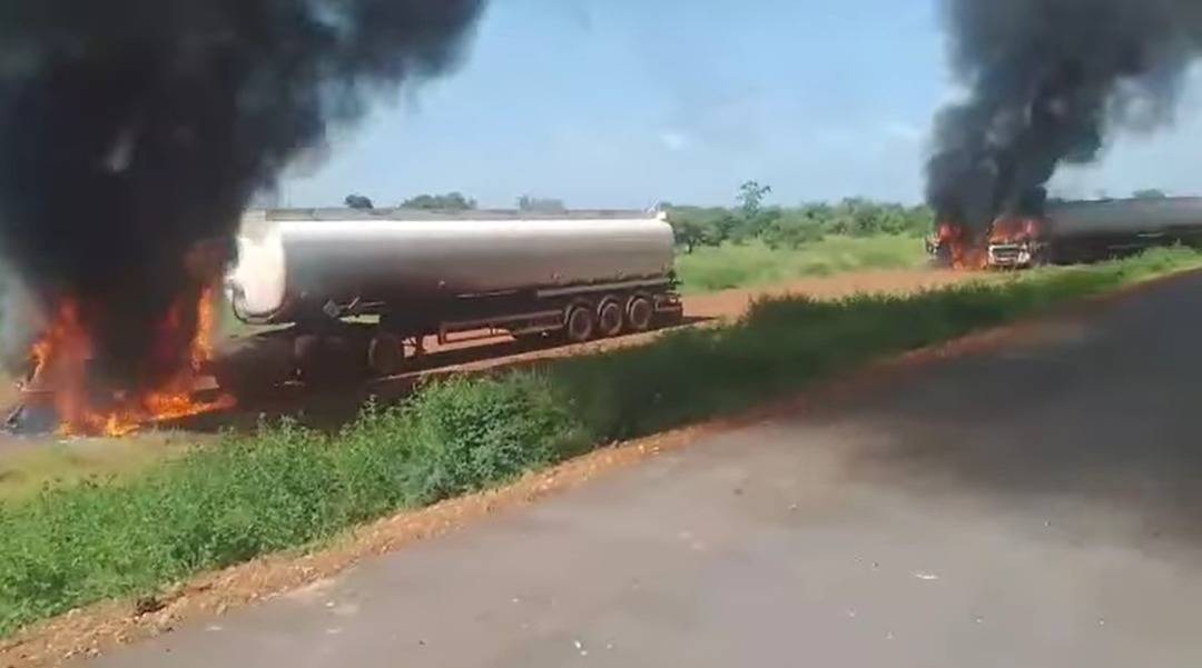 صهاريج وقود أضرم مقاتلو «القاعدة» النار فيها على طريق يربط مالي بالسنغال (إعلام محلي)