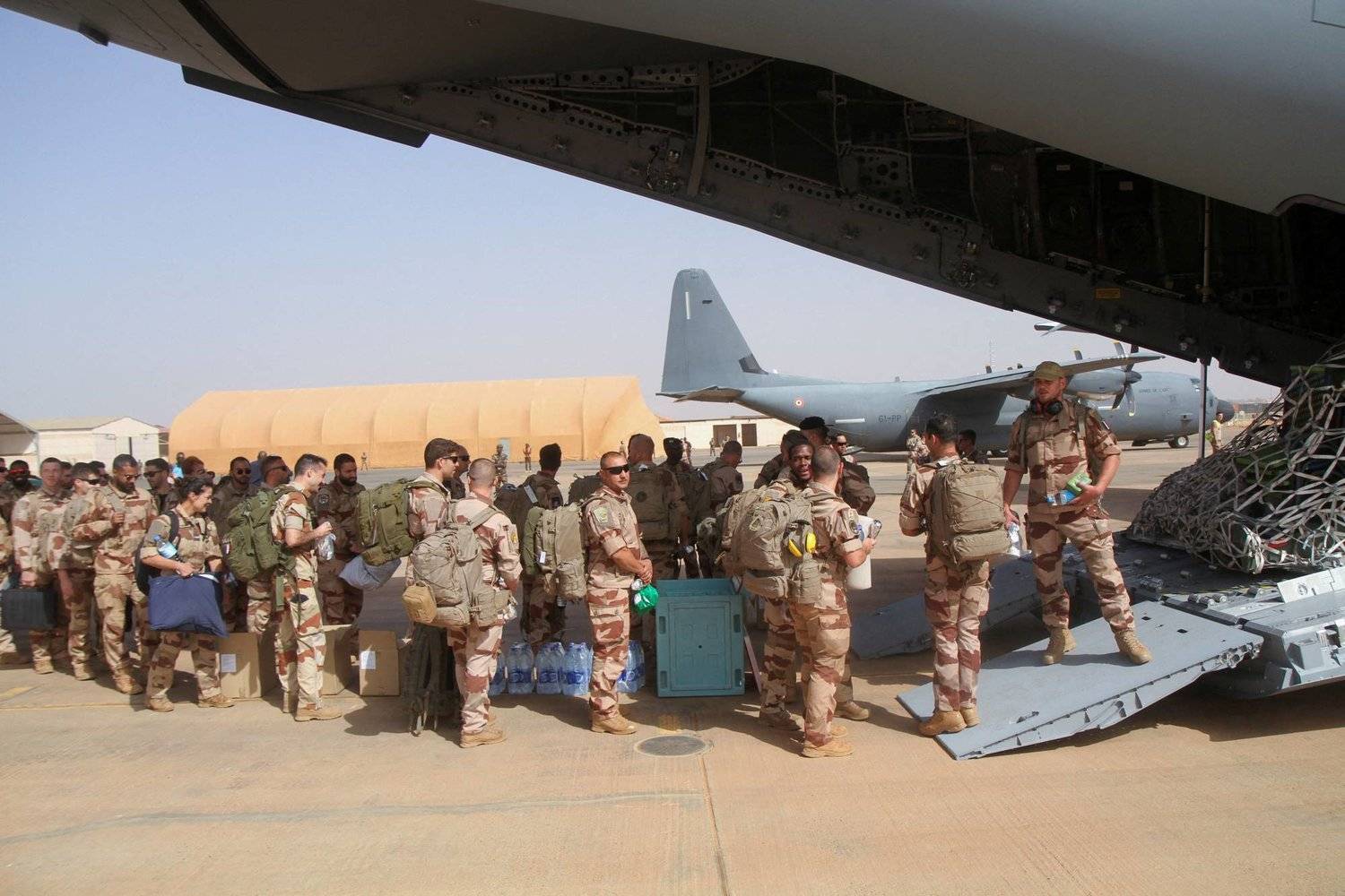 جنود فرنسيون يتأهبون لركوب طائرة عسكرية بعد انسحابهم من النيجر في 22 ديسمبر 2023 (رويترز)