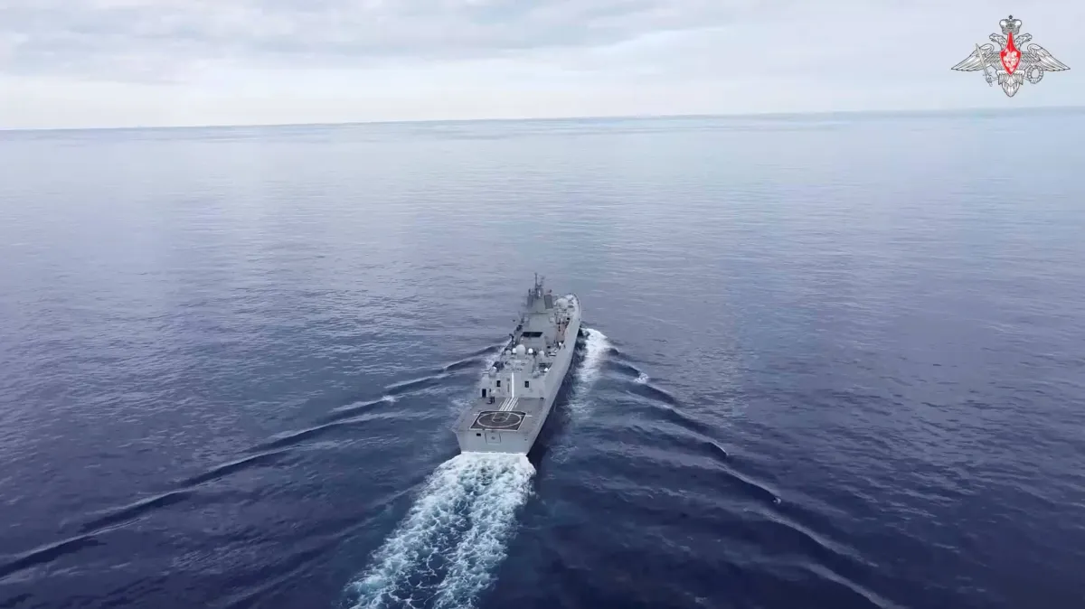صورة لسفينة حربية روسية مأخوذة من فيديو نشرته وزارة الدفاع الروسية في 25 يناير 2023 (رويترز)