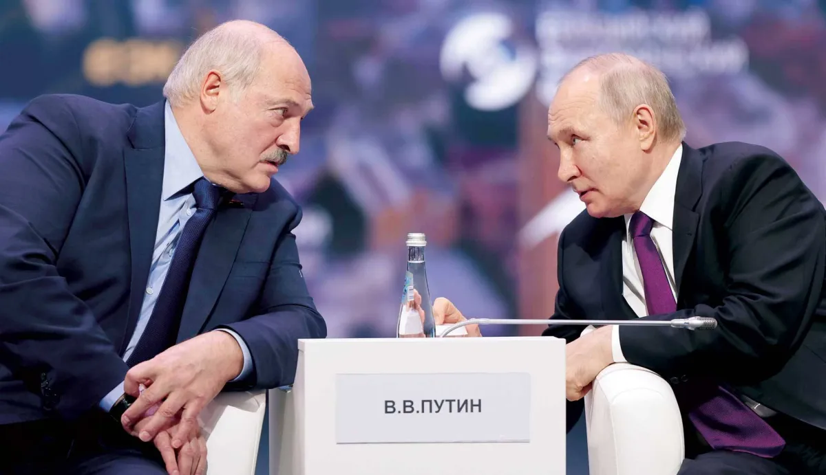 الرئيس الروسي مع نظيره البيلاروسي وقَّعا قبل شهرين مرسوماً خاصاً بنشر قدرات نووية غير استراتيجية في بيلاروسيا في إطار «مواجهة التحديات المتفاقمة لدولة الاتحاد» (أ.ب)