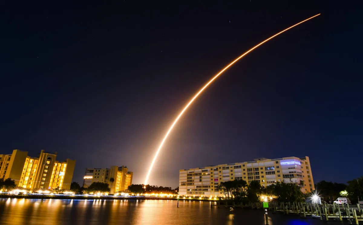 صاروخ «سبيس إكس» حاملاً 56 قمراً صناعياً لوضعها في مدار حول الأرض (أ.ب)