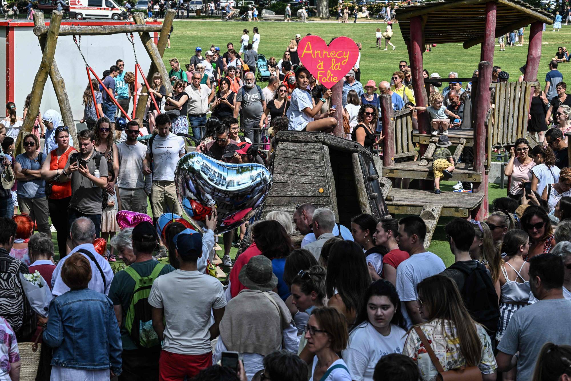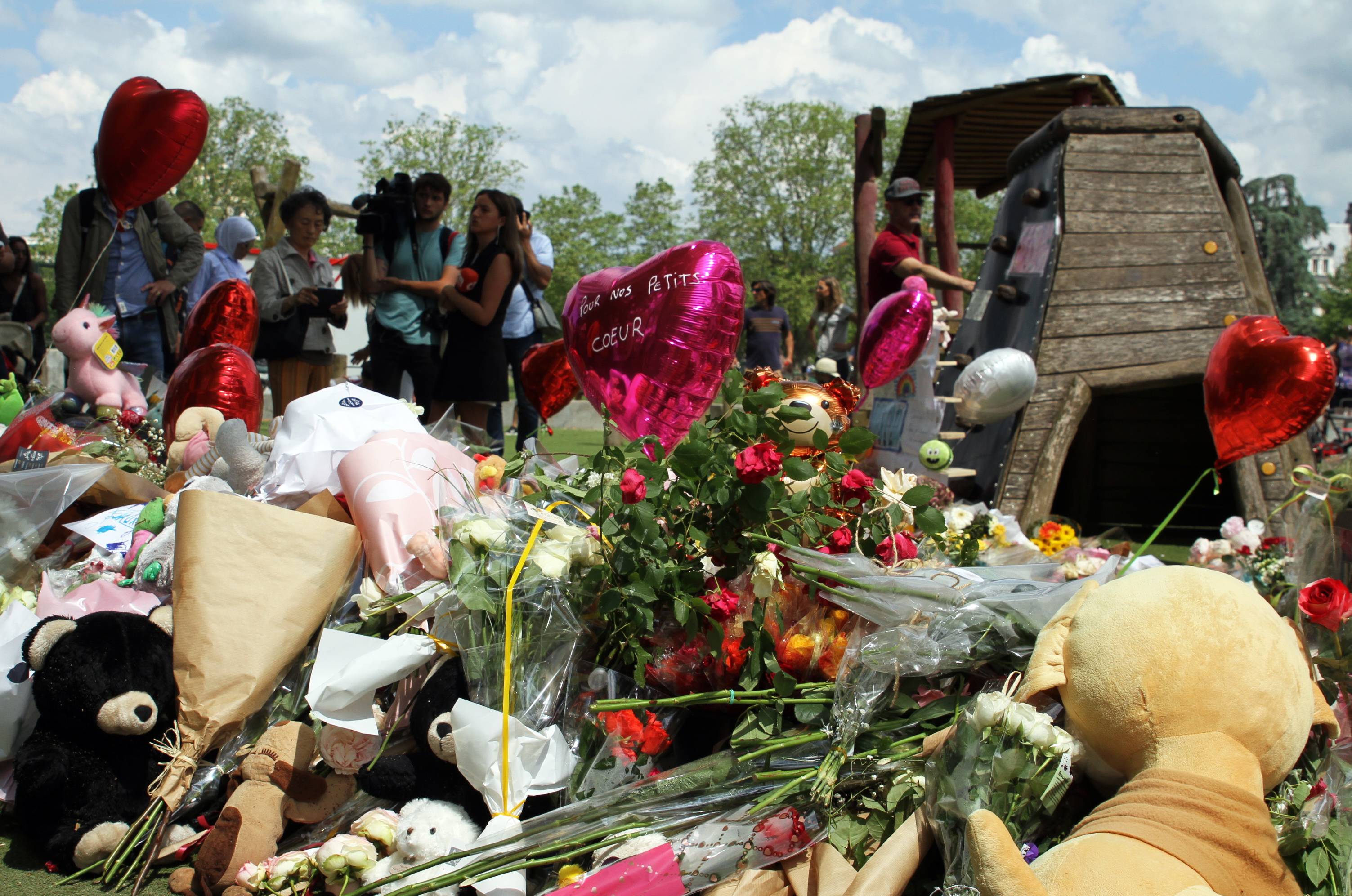ومنذ الهجوم الذي ارتكب في وضح النهار في مكان للعب قريب من البحيرة، يتدفق حشد إلى المكان لوضع أكاليل ورود ورسوم وبالونات بشكل قلب، بينما يلهو أطفال على أرجوحة ومزلقة. وكتب على رسالة موجهة إلى الضحايا الصغار «ألبا إنيو إيتي بيتر أفكارنا معكم». وكان الجمهور الذي حضر متنوعا جدا من عائلات وشباب ومسنين. ووضع كثر باقات من الزهور في الملعب.