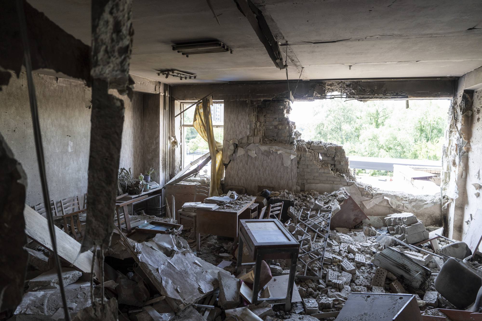 الدمار يظهر في مصنع طاله القصف الروسي في كييف (أ.ب)