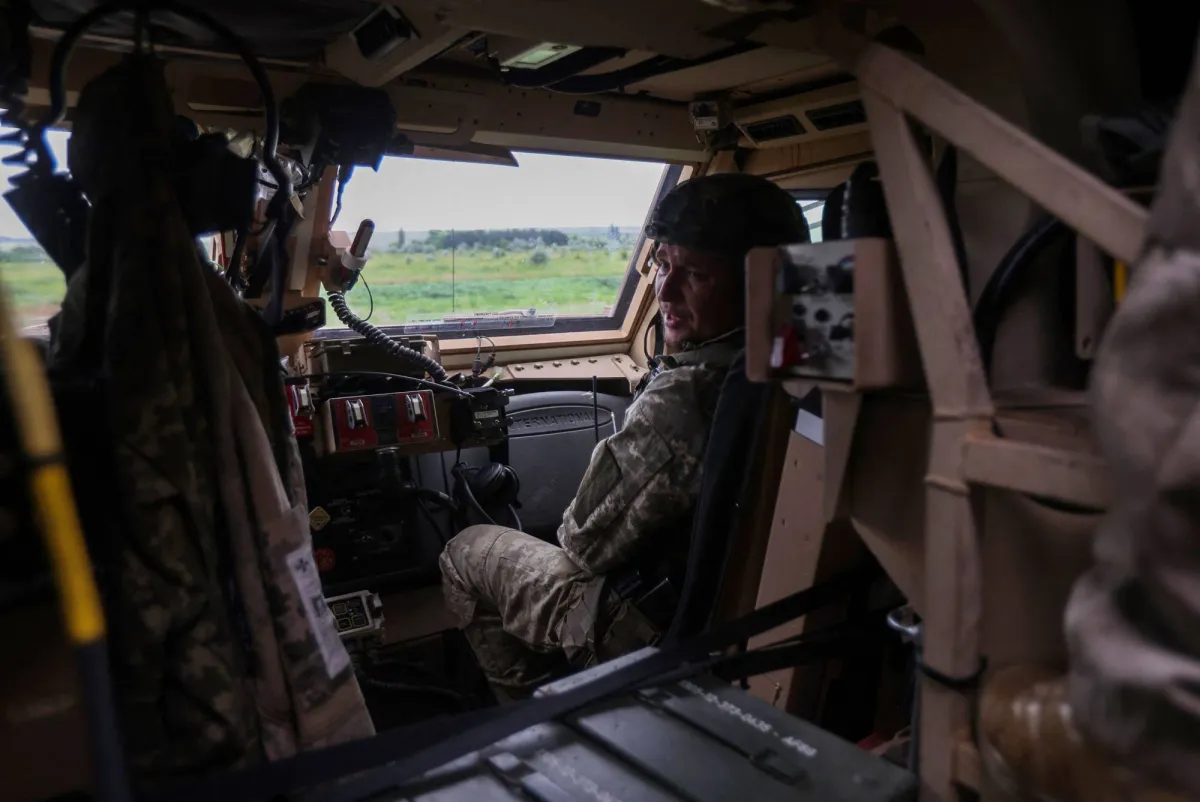 جندي أوكراني في دبابة في قرية بلاغوداتني التي تم تحريرها مؤخراً بمنطقة دونيتسك (أ.ف.ب)