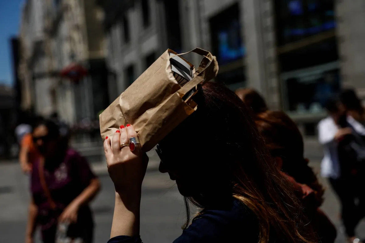 سيدة تقي رأسها من حرارة الشمس في مدينة برشلونة الإسبانية (أرشيفية - رويترز)