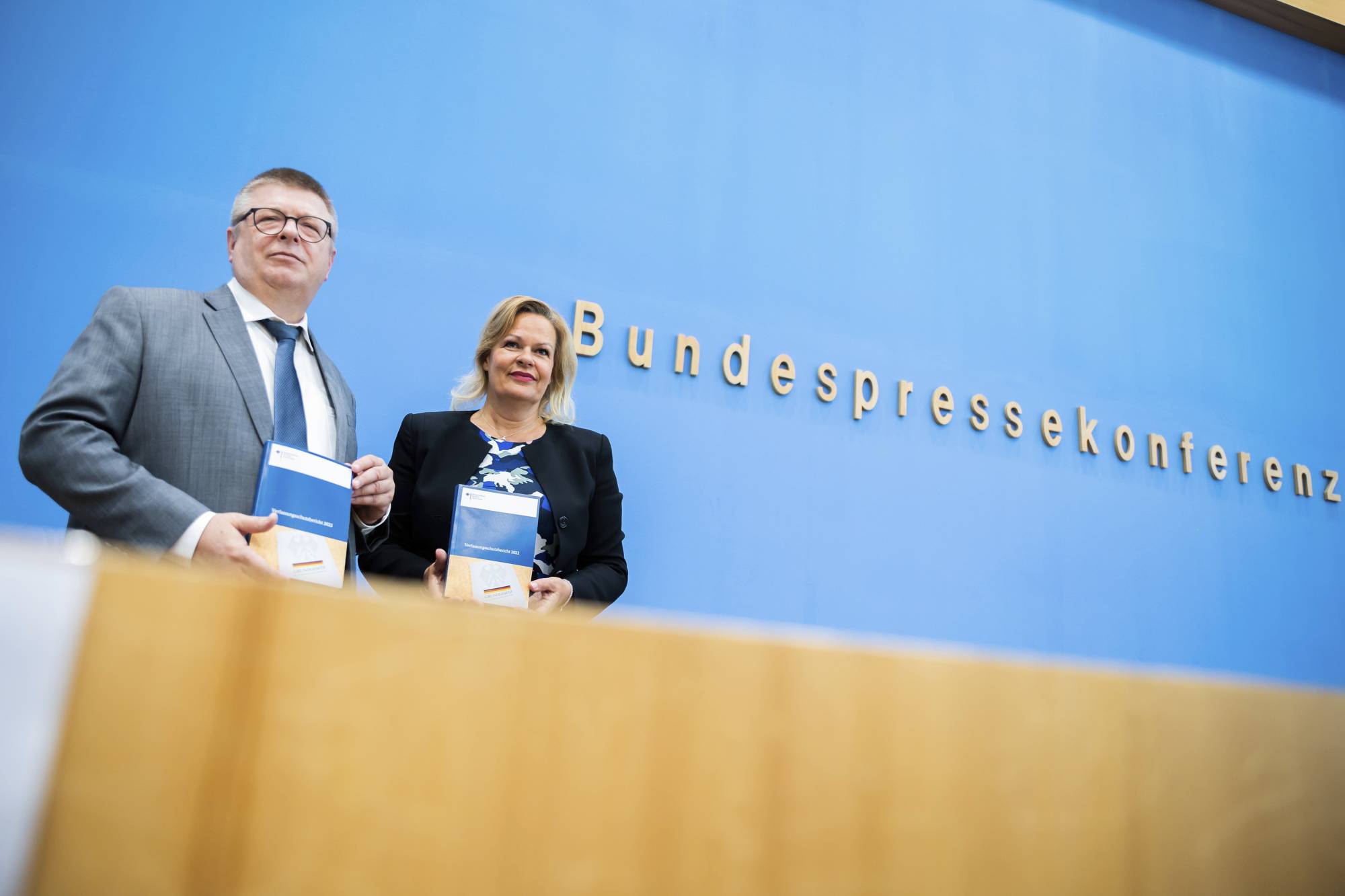 وعلى بعد أمتار من مقر المستشارية، حيث كان شولتز يستقبل ضيفه الصيني، عقد رئيس الاستخبارات توماس هالدنفانغ ووزيرة الداخلية نانسي فايرز مؤتمراً صحافياً للكشف عن التقرير.