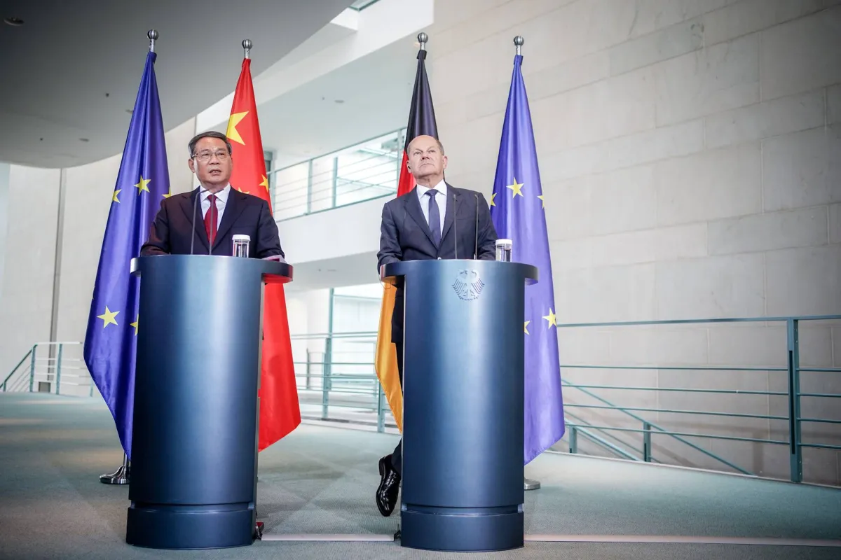 على الرغم من محاولة الحكومة الألمانية تخفيض التوتر في علاقتها مع الصين، يوم وصول وفد حكومي صيني كبير إلى برلين عبر تأجيل نشر استراتيجيتها الجديدة التي تحدد علاقتها ببكين، فإنها لم تنجح بذلك بشكل كامل. فقبل دقائق من صعود المستشار الألماني أولاف شولتز إلى المنبر للتحدث للصحافيين، وإلى جانبه ضيفه رئيس الوزراء الصيني لي كيانغ، خرج التقرير السنوي للاستخبارات الألمانية التي حددت الصين بأنها تشكل «التهديد الأكبر» لألمانيا من ناحية عمليات التجسس والتخريب.