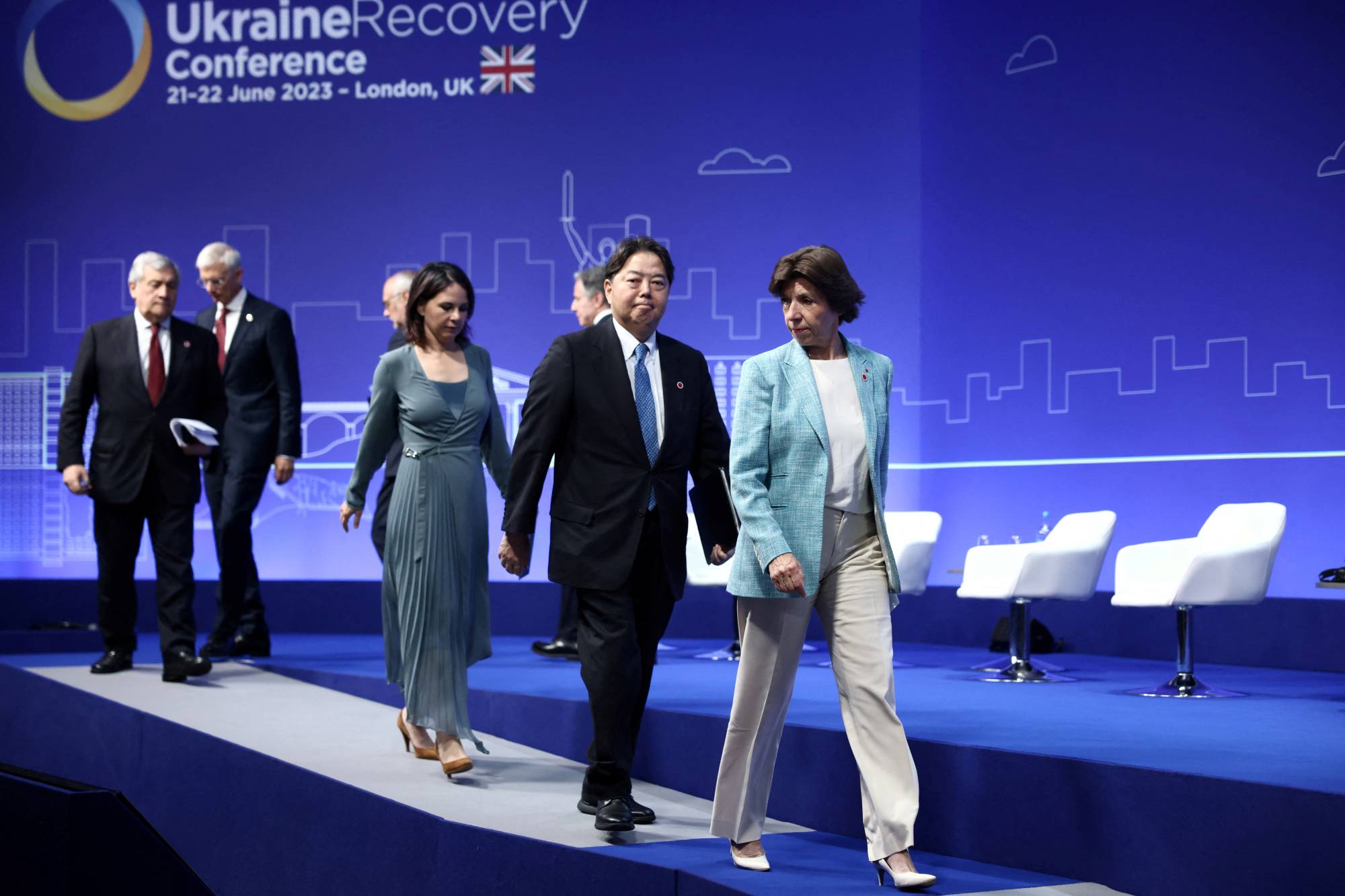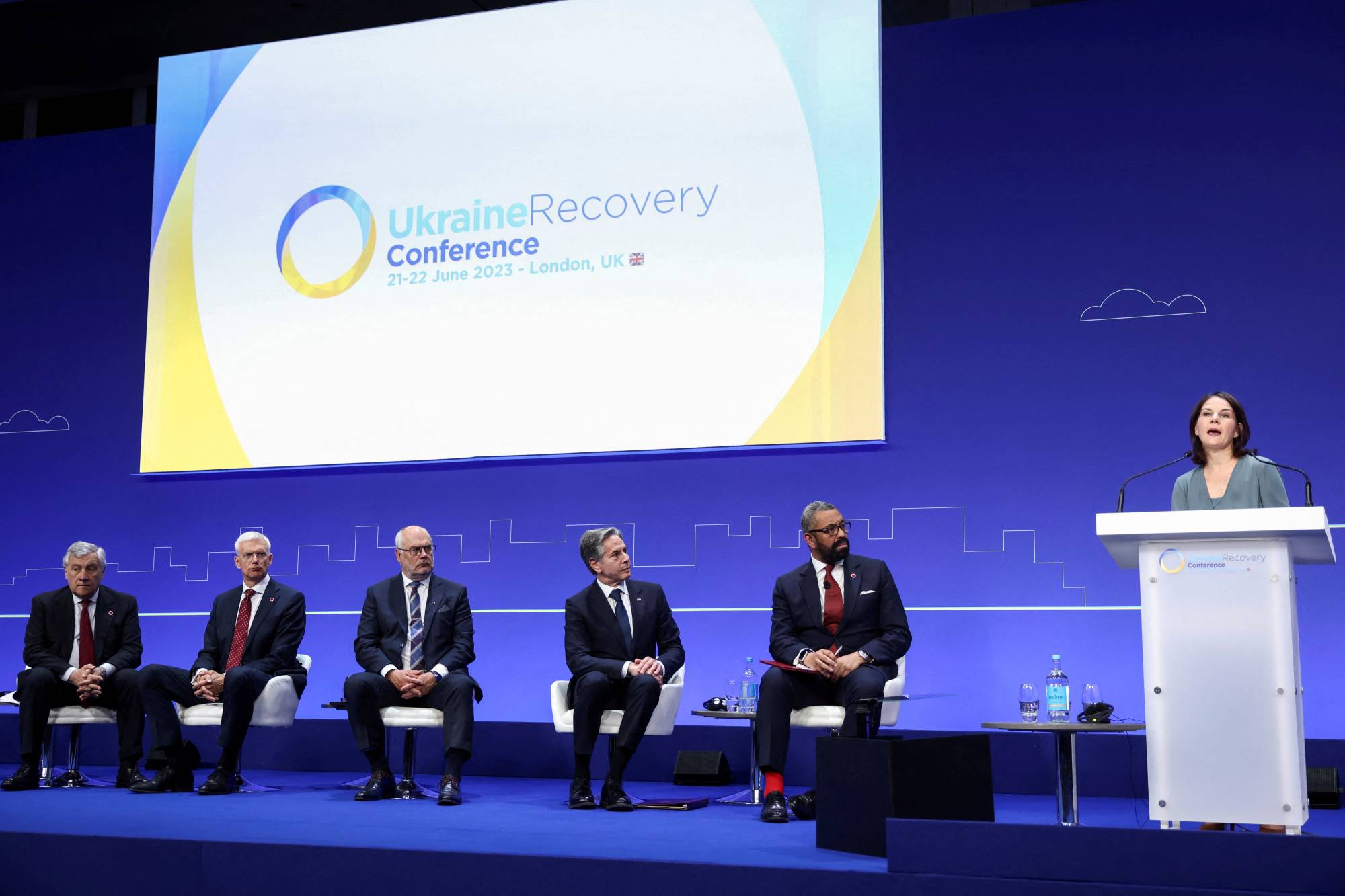 وأعلن رئيس الوزراء البريطاني ريشي سوناك أنه سيتم إنشاء إطار للتأمين ضد مخاطر الحرب الذي تغطيه دول مجموعة السبع في المؤتمر، لتزويد الشركات الخاصة بمزيد من الأمان. ويؤكد سوناك «سنحافظ مع حلفائنا على دعمنا الدفاع عن أوكرانيا والهجوم المضاد الذي تشنّه، وسنقف إلى جانبها مهما استغرق الأمر بينما تستمر في تحقيق انتصاراتها».