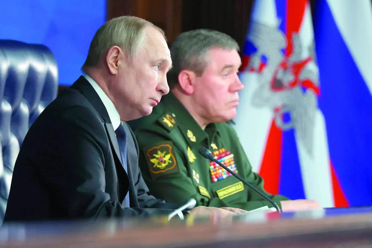 الرئيس الروسي فلاديمير بوتين في اجتماع مع الجنرال فاليري غيراسيموف (أ.ب)