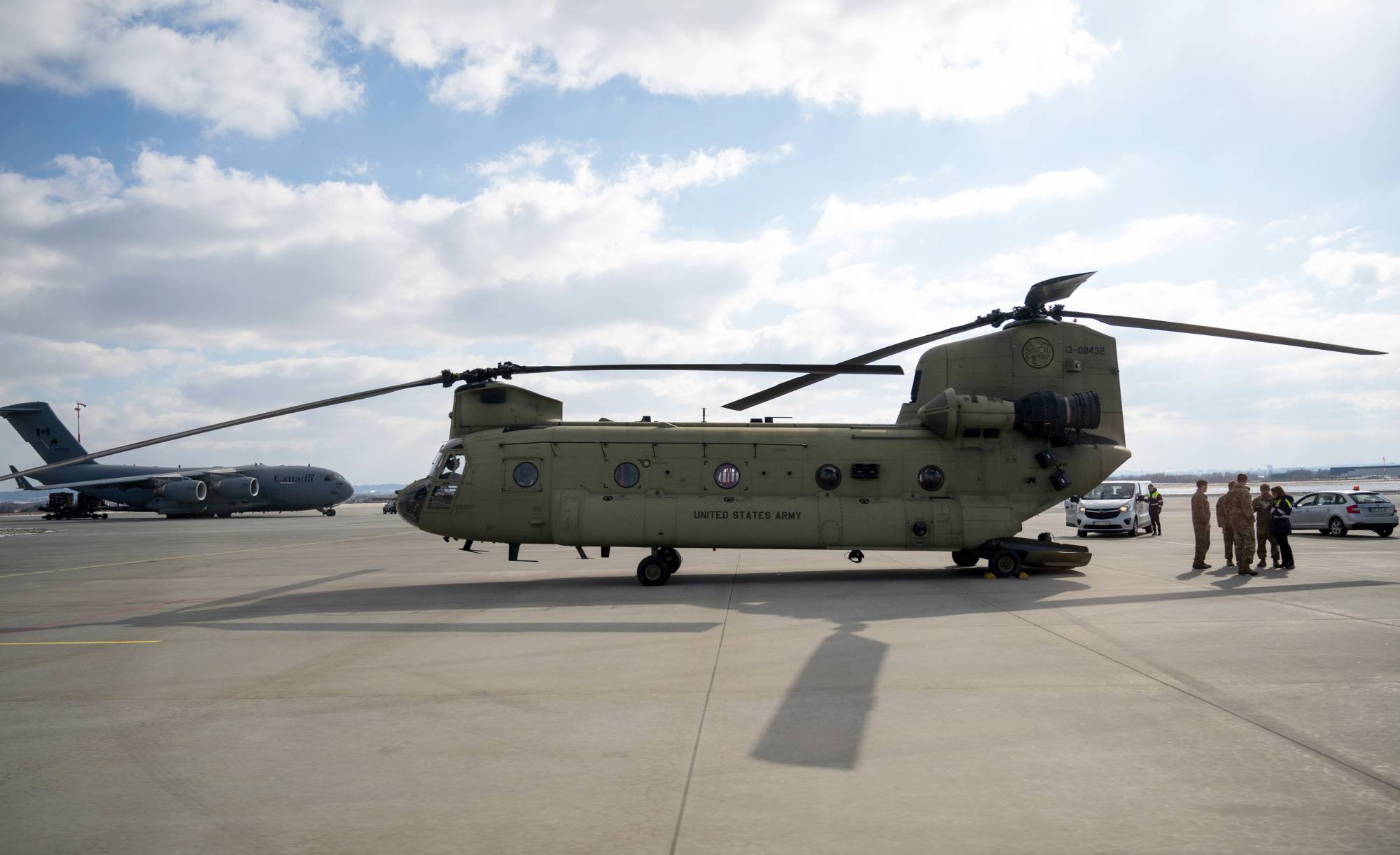 مروحية شينوك تابعة للجيش الأميركي في مطار بولندي (د.ب.أ)