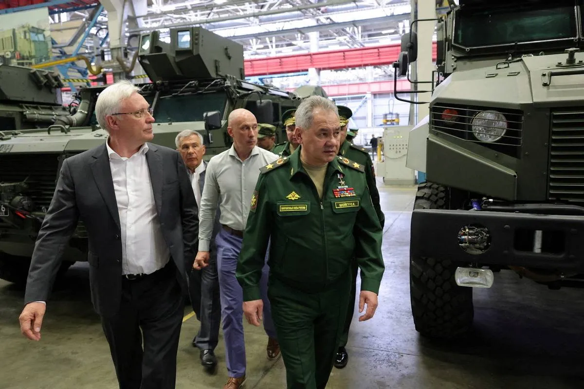 وزير الدفاع الروسي سيرغي شويغو يزور مصنعا للعتاد الحربي في جمهورية تتارستان التابعة للاتحاد الروسي (رويترز)