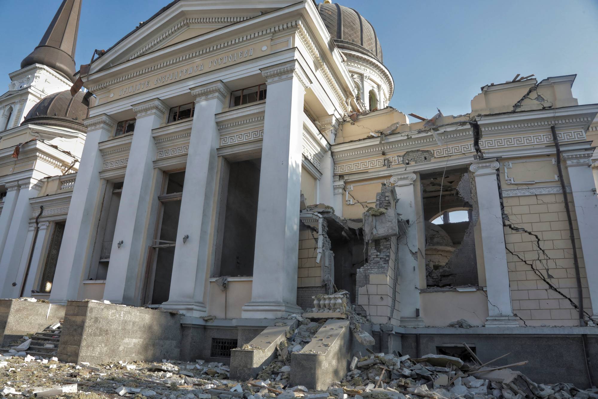 صورة لآثار القصف الروسي على كاتدرائية أوديسا (رويترز)