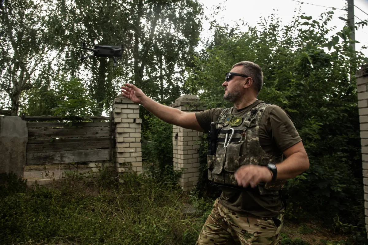 جندي أوكراني من سرية المسيرات العسكرية قرب خيرسون (د.ب.أ)