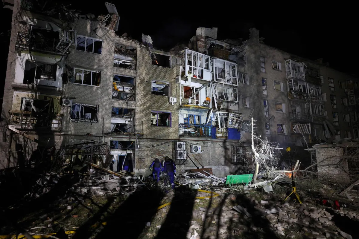 ونشر الرئيس الأوكراني مقطعا مصورا يُظهر أشخاصا يُزيلون الأنقاض من مبنى مكون من خمس طبقات، يعود تاريخه إلى الحقبة السوفياتية وقد تهدمت طبقته العلوية جراء الضربة.