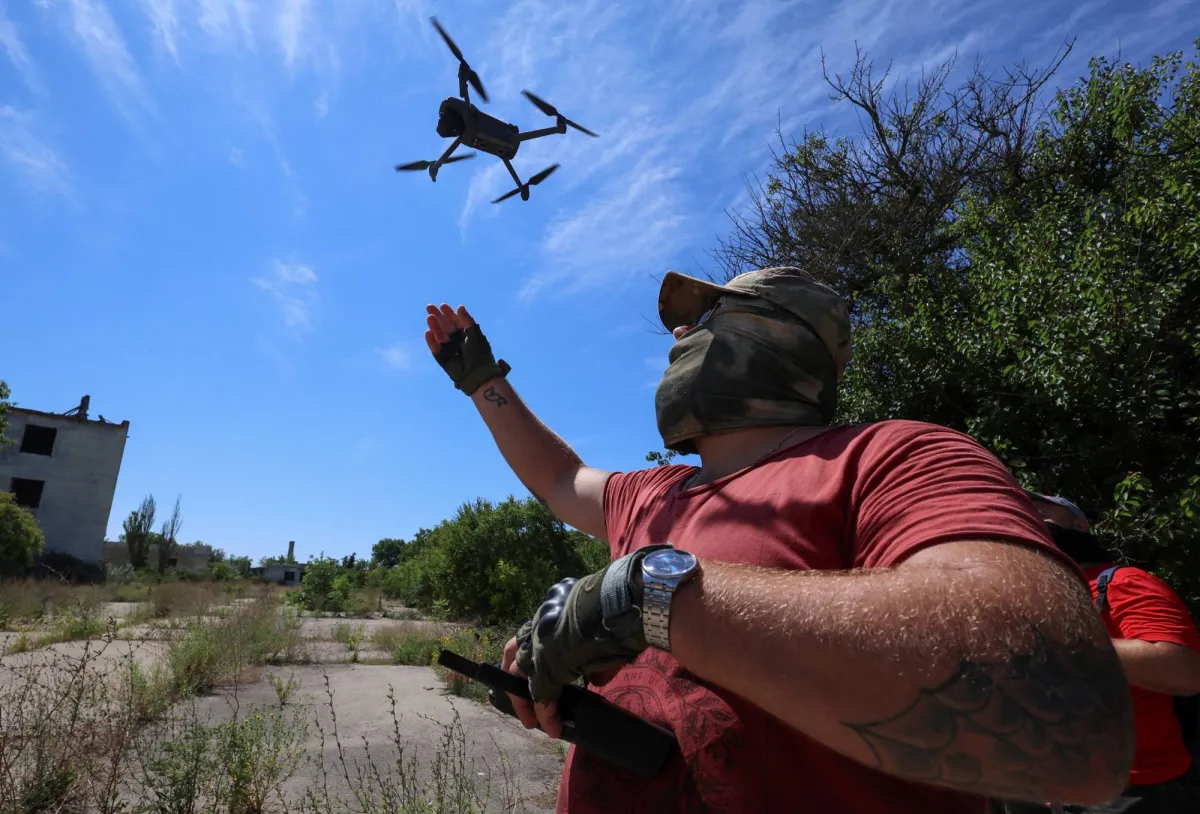 عناصر من وحدة دفاع إقليمية روسية يقومون بتشغيل طائرات من دون طيار أثناء تدريبات بالقرم (رويترز)