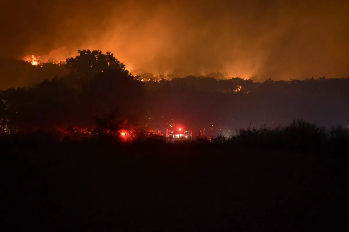 منظر عام لحريق هائل في قرية موناستيراكي بالقرب من مدينة ألكسندروبوليس، تراقيا، شمال اليونان (إ.ب.أ)