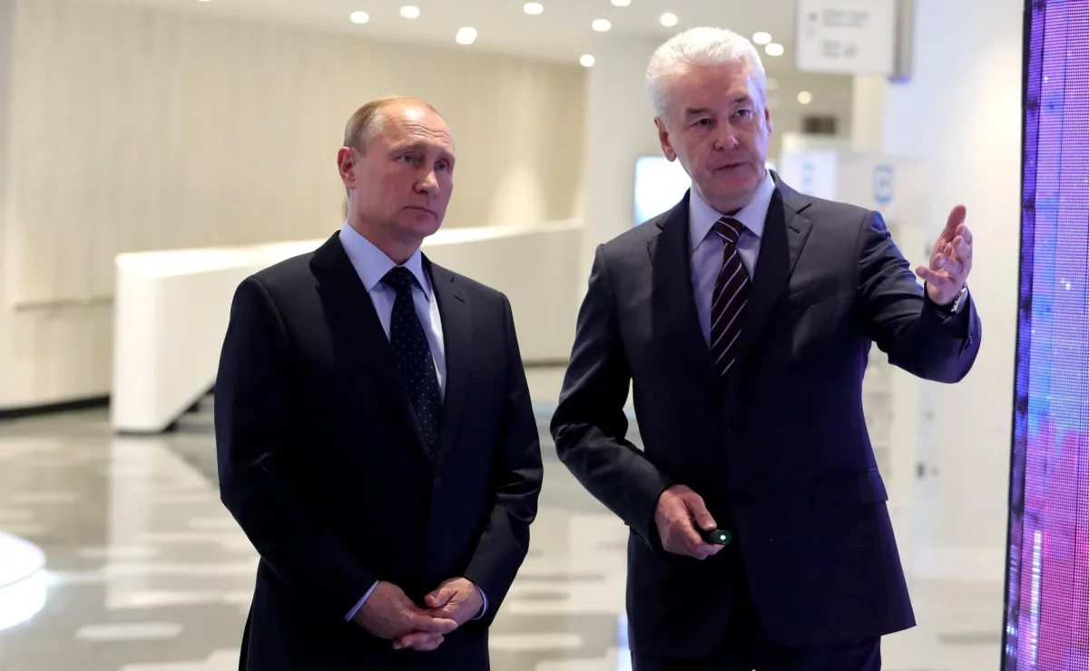 عمدة موسكو سيرغي سوبيانين يتحدث إلى الرئيس الروسي فلاديمير بوتين (د.ب.أ)