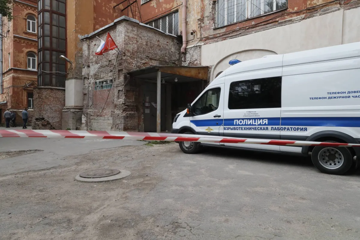 محققون روس يعملون بالقرب من مكتب التجنيد حيث انفجرت عبوة ناسفة في سان بطرسبرغ بروسيا في 5 سبتمبر 2023 (إ.ب.أ)