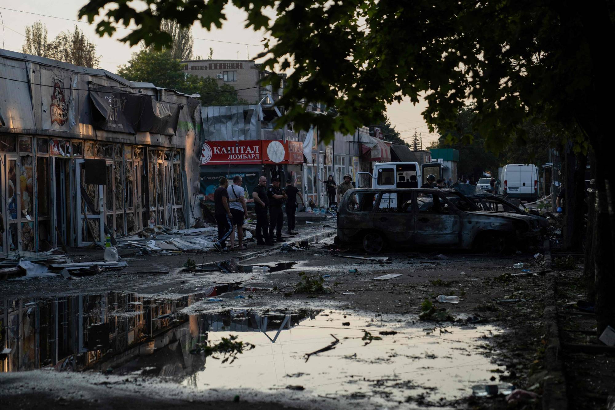 دمار في السوق التي طالها قصف روسي بمدينة كوستيانتينيفكا شرق البلاد (أ.ف.ب)