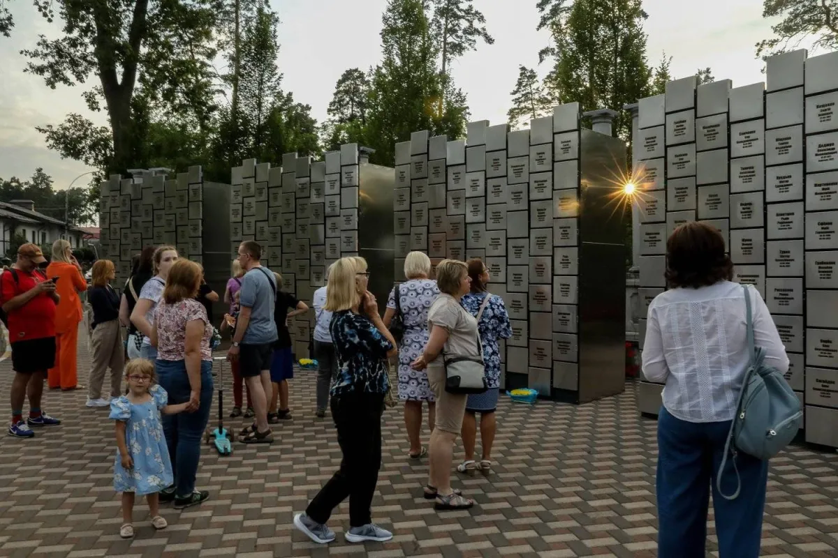 أوكرانيون يزورون النصب التذكاري لضحايا الحرب (إ.ب.أ)