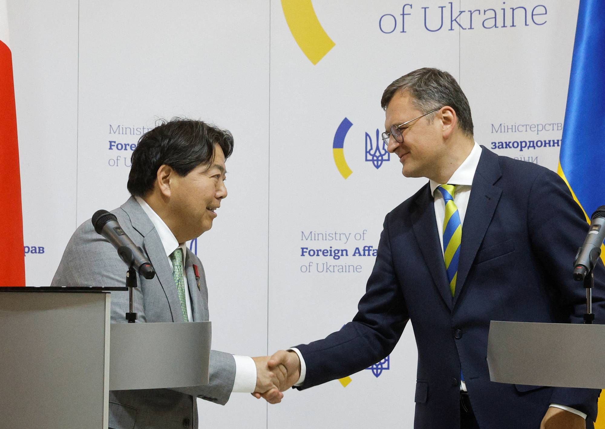 التقى وزير خارجية اليابان (السبت) بنظيره الأوكراني دميترو كوليبا في كييف، إذ يقوم يوشيماسا هاياشي بزيارة غير معلنة إلى أوكرانيا تستهدف إظهار الدعم لدفاع الدولة الواقعة في شرق أوروبا ضد الاجتياح الروسي المستمر حالياً لأراضيها، وفقا لوكالة أنباء «كيودو» اليابانية، نقلاً عن وزارة الخارجية اليابانية، والسفارة اليابانية في كييف.