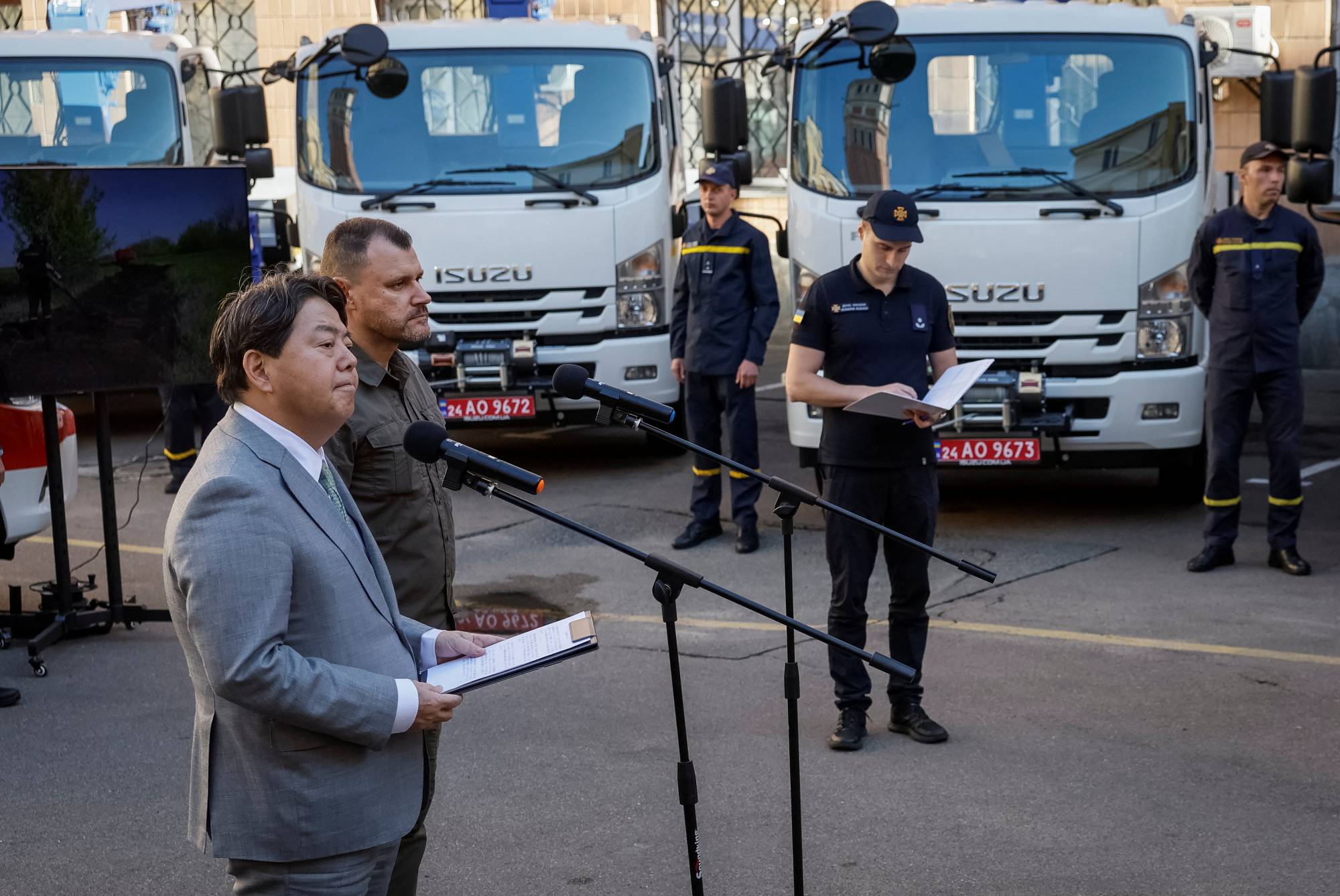 وأعلنت سفارة اليابان في كييف عبر «فيسبوك»: «وصل وزير الخارجية الياباني إلى أوكرانيا»، مرفقة ذلك بمقطع مصور يظهر وصول المسؤول إلى محطة قطارات في العاصمة الأوكرانية. ويرافق هاياشي ممثلون عن شركات يابانية، على ما جاء في بيان لوزارة الخارجية، التي قالت إن إعادة إعمار أوكرانيا ستكون على رأس أجندة هاياشي مع المسؤولين الأوكرانيين. وانضمت اليابان إلى الدول الغربية لفرض عقوبات على موسكو، وقدمت لأوكرانيا دعماً مالياً وإنسانياً.