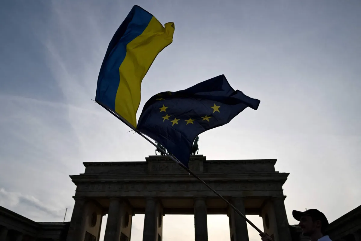 العلم الأوكراني وعلم الاتحاد الأوروبي (أرشيفية - أ.ف.ب)