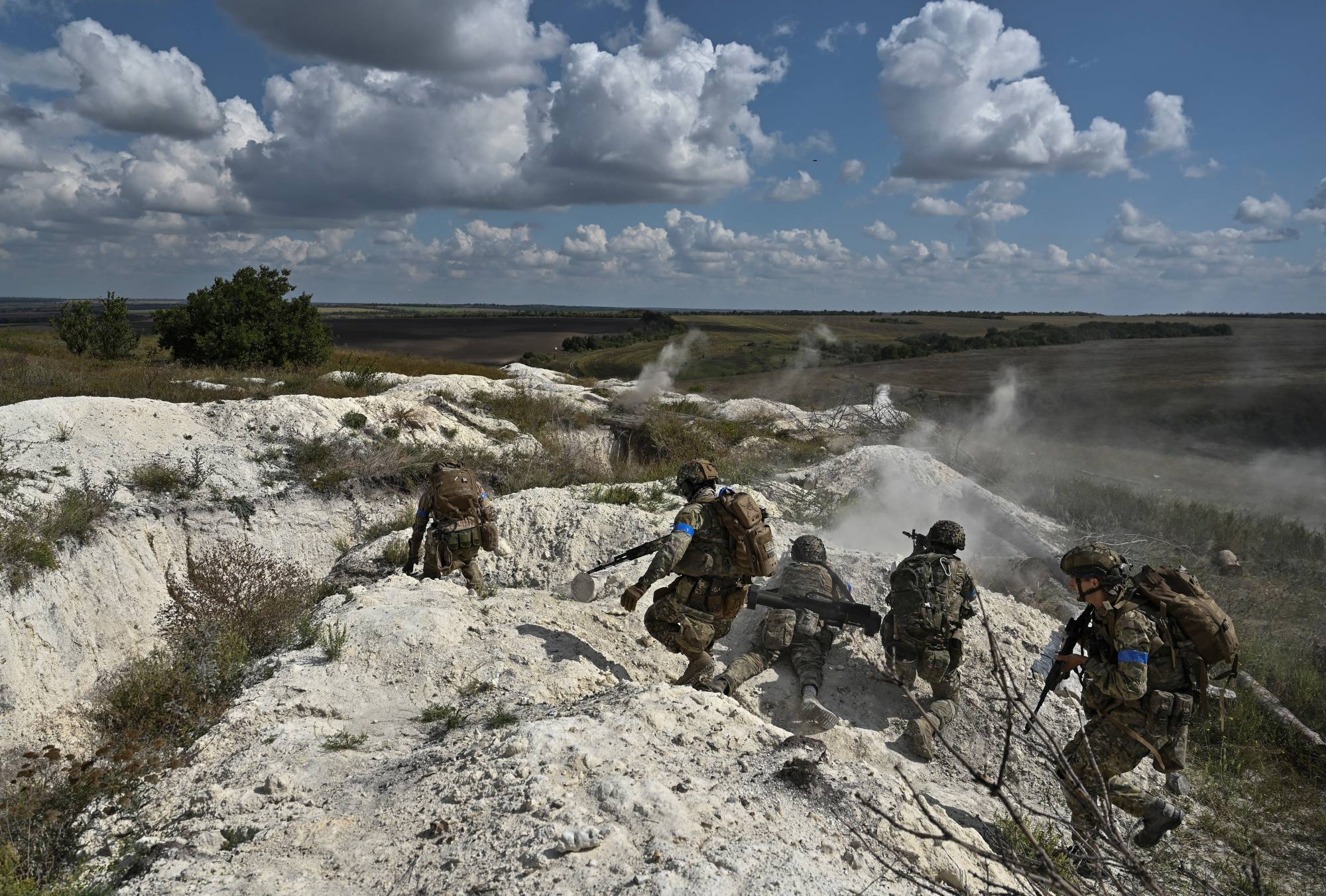 جنود أوكرانيون يشاركون بتدريبات عسكرية بالقرب من باخموت (رويترز)