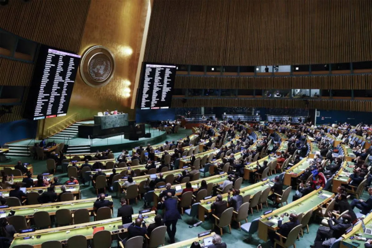 الجمعية العامة للأمم المتحدة خلال التصويت على تعليق عضوية روسيا في مجلس حقوق الإنسان (إ.ب.أ)
