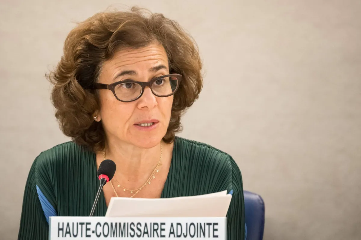 نائبة المفوض السامي لحقوق الإنسان ندى الناشف تلقي كلمتها أمام مجلس حقوق الإنسان التابع للأمم المتحدة في جنيف الاثنين (أ.ف.ب)