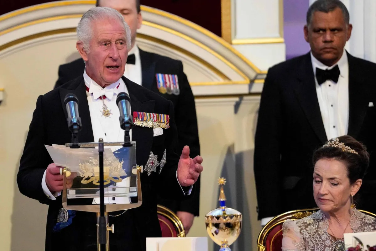 ملك بريطانيا تشارلز الثالث يلقي كلمة خلال مأدبة عشاء في «مانشن هاوس» في لندن (أ.ف.ب)