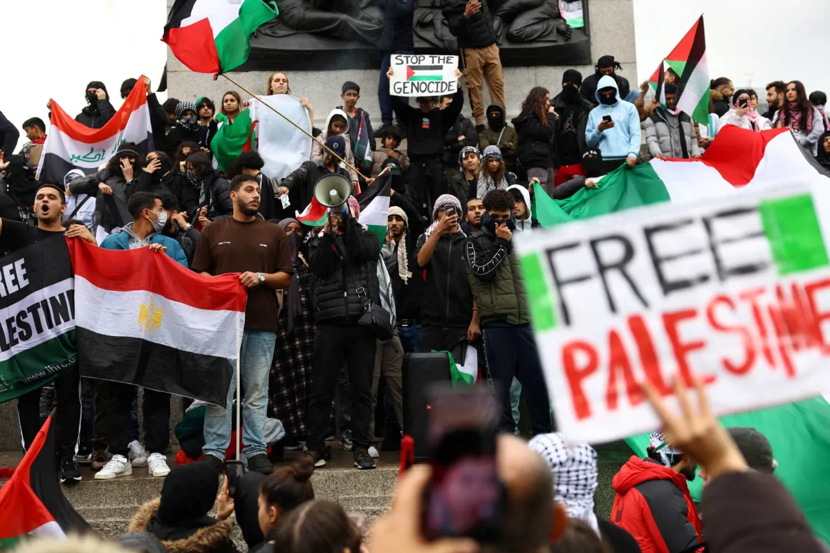 شارك نحو 100 ألف شخص في مظاهرة لدعم الفلسطينيين بوسط لندن، اليوم السبت، جابت أنحاء العاصمة البريطانية للمطالبة بالوقف الفوري لإطلاق النار في غزة التي تتعرض للقصف منذ الهجوم الذي شنته حركة المقاومة الإسلامية (حماس) على إسرائيل قبل أسبوعين.