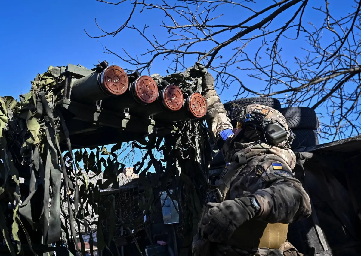 جندي أوكراني يقوم بتحميل قذيفة في نظام إطلاق صواريخ صغير متعدد الأطراف قبل إطلاق النار على القوات الروسية في موقع بالقرب من خط المواجهة (رويترز)