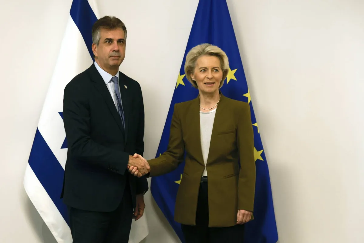 وزير الخارجية الإسرائيلي إيلي كوهين ورئيسة المفوضية الأوروبية أورسولا فون دير لاين (أ.ب)