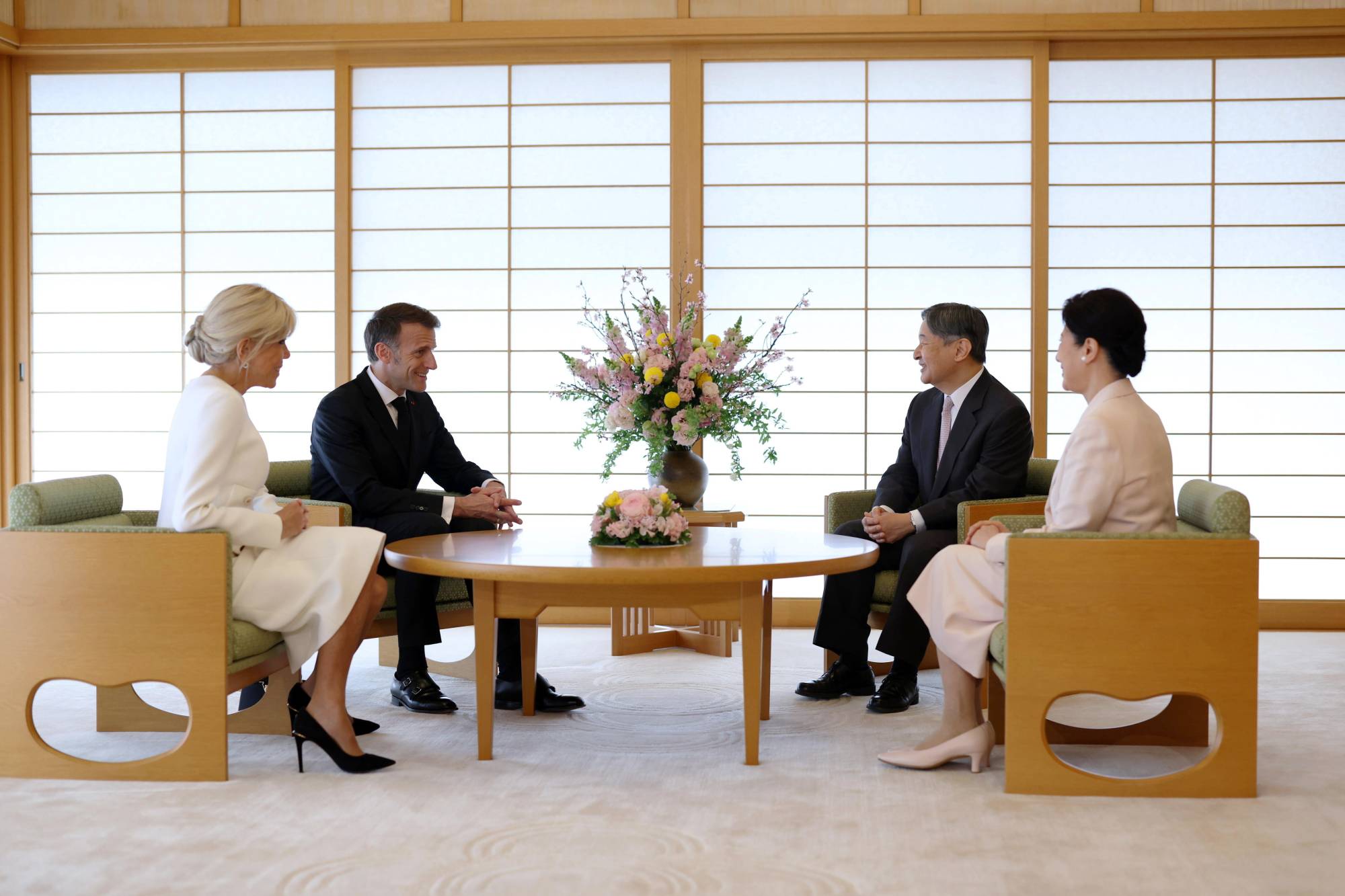 إمبراطور اليابان ناروهيتو وزوجته يستقبلان الخميس الرئيس إيمانويل ماكرون وزوجته بالقصر الإمبراطوري في طوكيو (إ.ب.أ)