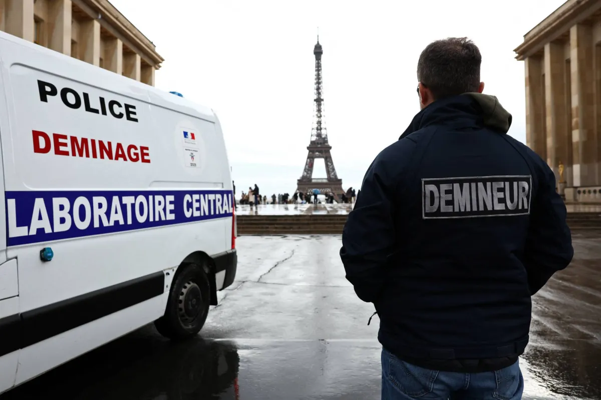 شرطة باريس في ميدان تروكاديرو بالقرب من برج إيفل (رويترز)
