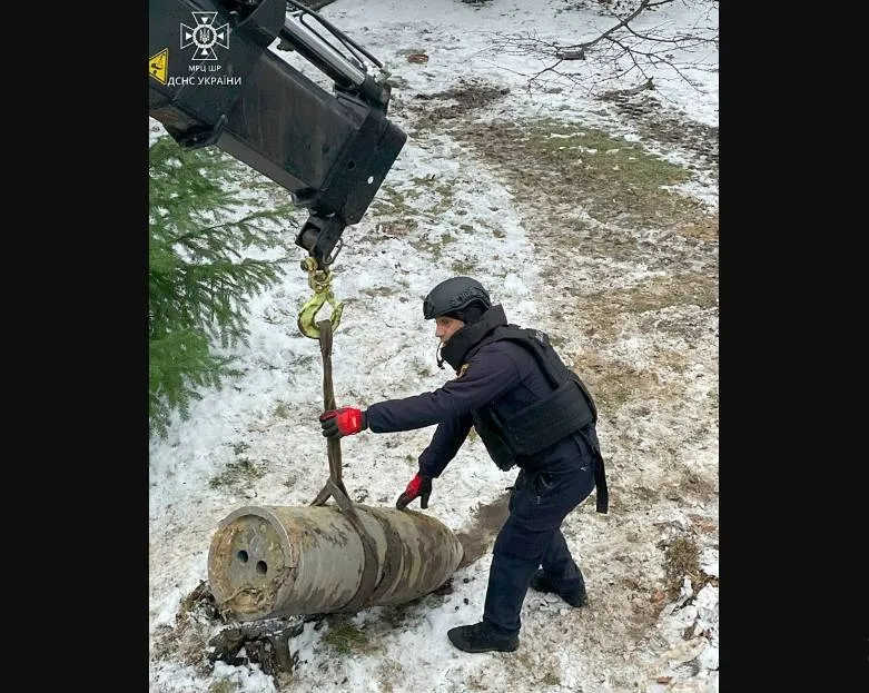 ونشرت هيئة الحالات الطارئة الأوكرانية عبر قناتها على «تلغرام» صورا تظهر رافعة تنتشل مخلفات صاروخ من الأرض.