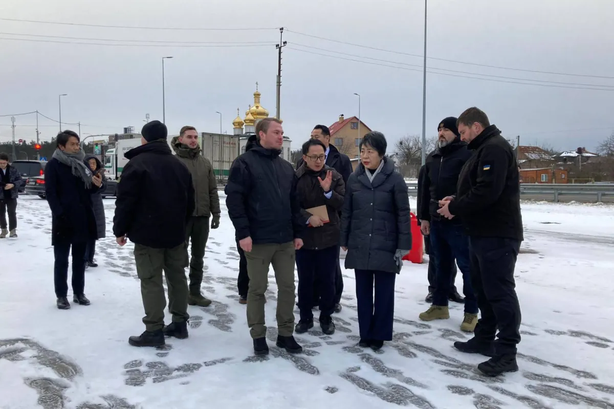 والتقت وزيرة الخارجية اليابانية كاميكاوا، وهي أول مسؤولة أجنبية كبيرة تزور أوكرانيا العام الحالي، بنظيرها دميترو كوليبا بعد أن زارت بوتشا ومدينة إربين اللتين شهدتا قتالاً عنيفاً. وقالت الوزيرة اليابانية خلال مؤتمر صحافي مشترك عُقد في ملجأ للاحتماء من الغارات الجوية بوصفه إجراء أمنيا إن «اليابان عازمة على دعم أوكرانيا حتى يعود السلام إلى هذا البلد». وأضافت «بناء على نتائج زيارتي، ستواصل اليابان تعزيز التعاون مع أوكرانيا». وأشارت بشكل خاص إلى أن طوكيو خصصت 37 مليون دولار لتزويد أوكرانيا بنظام لرصد المسيّرات.