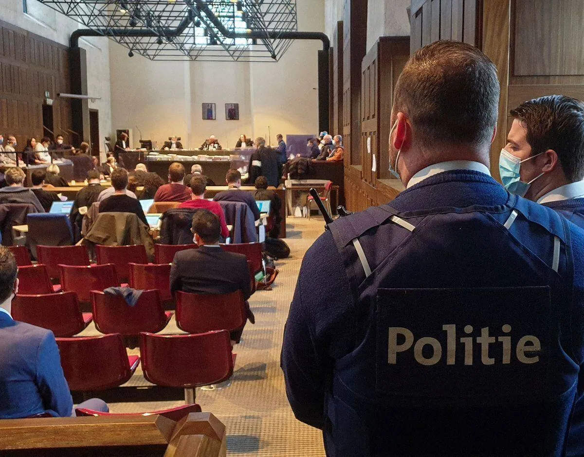 عنصران من الشرطة يقفان في قاعة محكمة ببلجيكا أثناء صدور حكم (أرشيفية - رويترز)