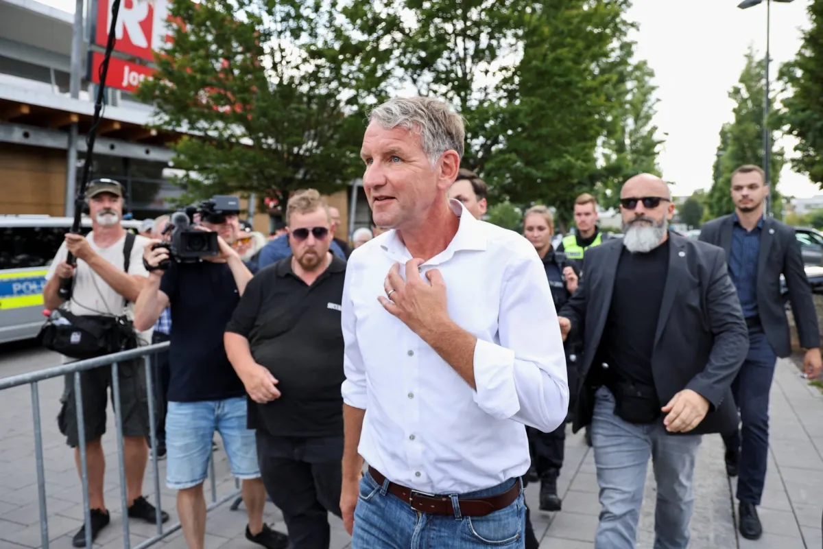 بيورن هوكه زعيم حزب «البديل من أجل ألمانيا» يمشي في ولاية تورينغن خلال حضوره تجمعاً انتخابياً في إرفورت يوم 20 أغسطس 2024 (رويترز)