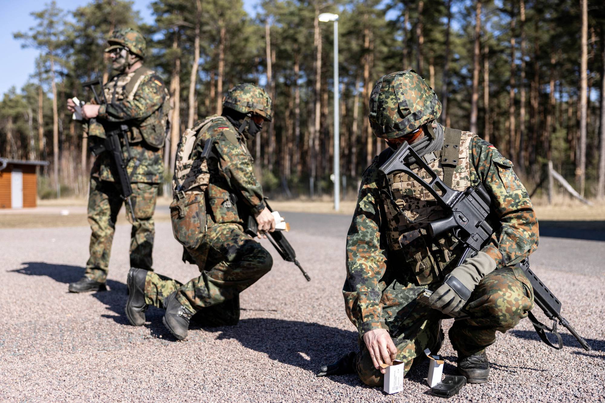 جنود ألمان يطلقون النار خلال تدريبات في معسكر بيليتس قرب برلين (رويترز)