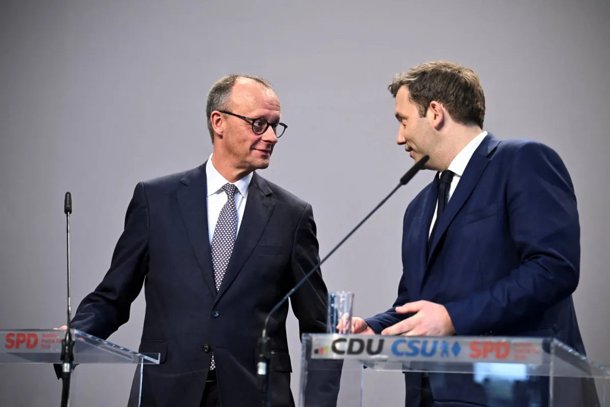 وأعلن الشريكان في الائتلاف التوصل للاتفاق في مؤتمر صحافي مشترك افتتحه ميرتس قائلا إن الاتفاق الحكومي «هو إشارة إلى الحلفاء الأوروبيين بأن ألمانيا ستشكل حكومة قادرة على اتخاذ قرارات». وجاء في البيان المشترك لتشكيل الحكومة بأن العلاقات مع الولايات المتحدة بالغة الأهمية وأن الحكومة القادمة ستعمل على التوصل لاتفاق تجارة حرة على المدى المتوسط. وكرر ميرتس التعهدات التي كان اتفق عليها مع الحزب الاشتراكي لإنفاق المليارات في السنوات الأربع القادمة في مشاريع بنى تحتية وعلى الدفاع.