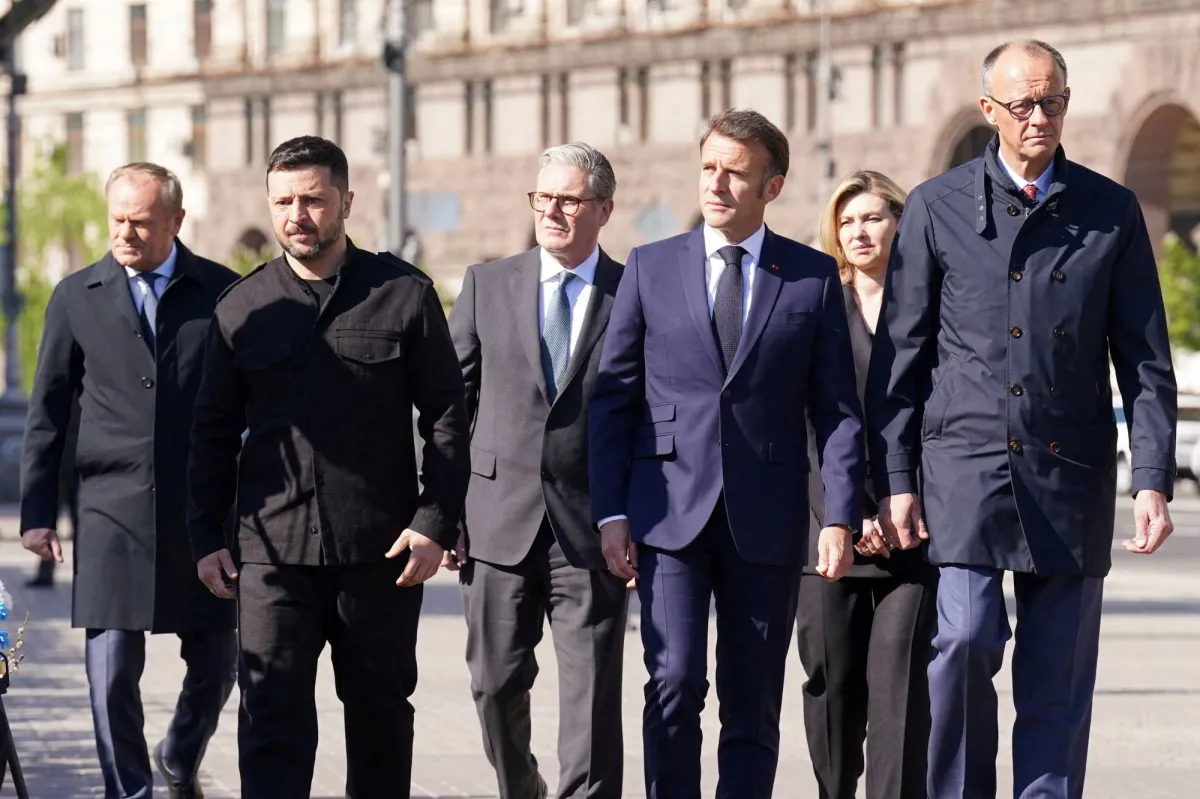 وتوافد أمس رئيس الوزراء البريطاني كير ستارمر والرئيس الفرنسي إيمانويل ماكرون والمستشار الألماني فريدريش ميرتس ورئيس الوزراء البولندي دونالد توسك، على كييف لأول مرة معاً، وعقدوا محادثات مع الرئيس فولودمير زيلينسكي كما تحدثوا إلى الرئيس الأميركي دونالد ترمب. وأيد الزعماء الأوروبيون خطة أميركية لوقف إطلاق النار دون شروط، وهددوا الرئيس الروسي فلاديمير بوتين بعقوبات جديدة «ضخمة» إذا لم يلتزم.