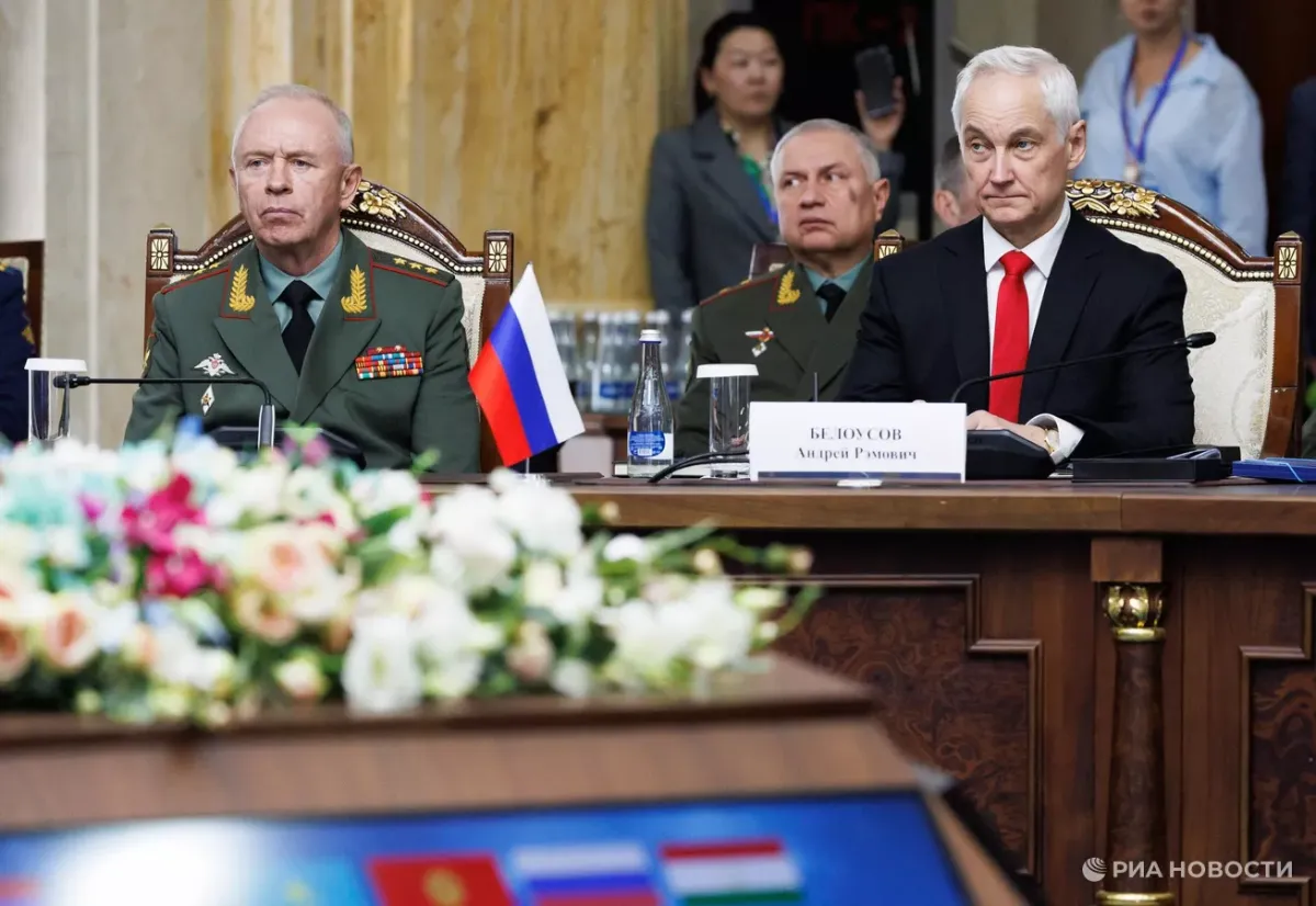 وزير الدفاع الروسي آندريه بيلوسوف خلال اجتماعات وزراء دفاع بلدان «منظمة معاهدة الأمن الجماعي» بالعاصمة القيرغيزية بِيشْكِيك الأربعاء (متداولة)