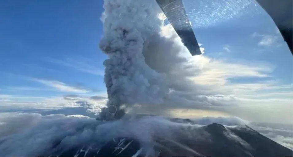 وقال فرع كامتشاتكا التابع لوزارة خدمات الطوارئ الروسية إنه تم رصد ارتفاع عمود من الرماد يصل إلى 6000 متر، بعد ثوران البركان. ويبلغ ارتفاع البركان نفسه 1856 متراً.