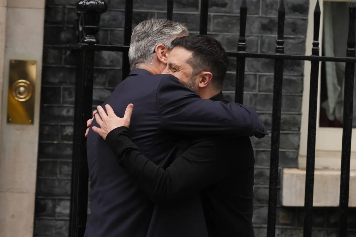 ووصل زيلينسكي عند الساعة 09:40 (08:40 ت غ) إلى مقر ستارمر في داونينغ ستريت، حيث تعانقا وتصافحا قبل التوجه إلى الداخل.