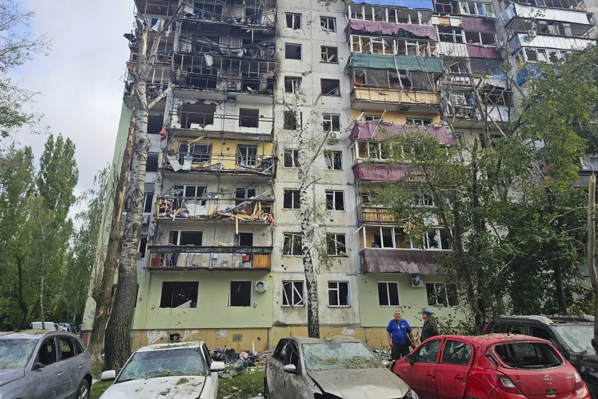 صورة وزّعتها حكومة منطقة كورسك لبناية تعرّضت لهجوم بالمسيّرات الأوكرانية (أ.ب)