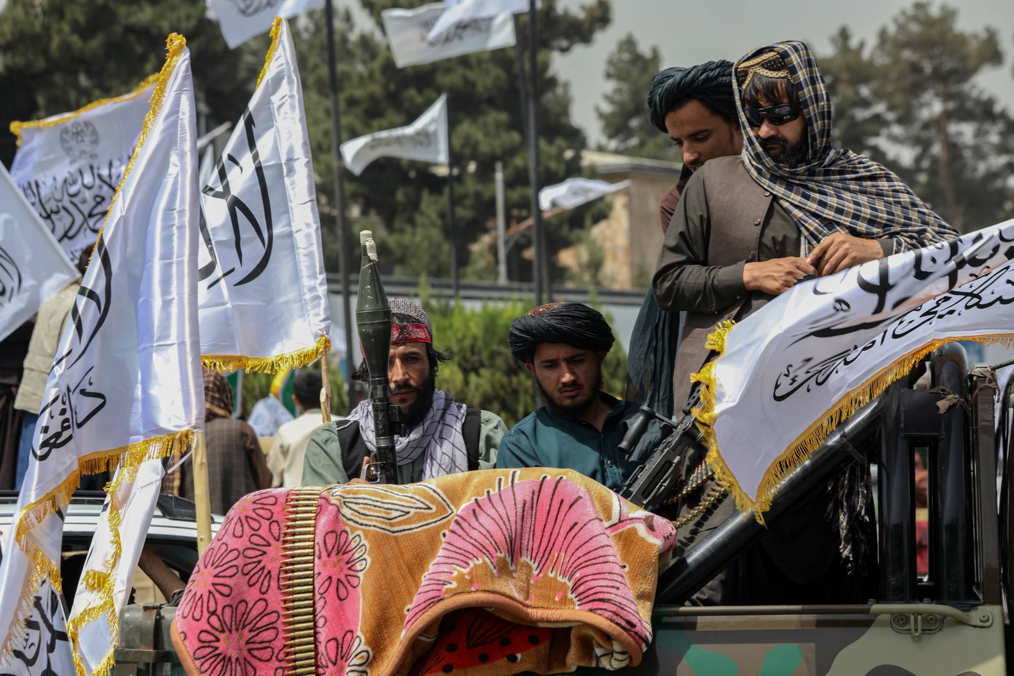 أنصار حكومة «طالبان» يتجمعون في كابل السبت الماضي خلال الاحتفالات بالذكرى الرابعة لسيطرة الحركة على أفغانستان (إ.ب.أ)